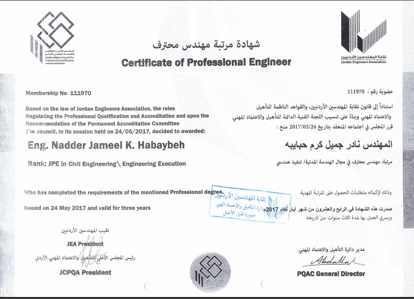 Professional Engineer registered at Jordan Engineer Association holding Number 11970